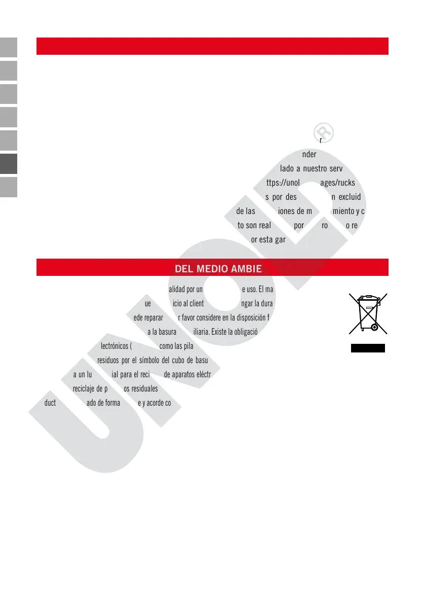 Este producto no puede ser eliminado junto a la basura domiciliaria. Existe la obligación legal de eliminar los residuos
