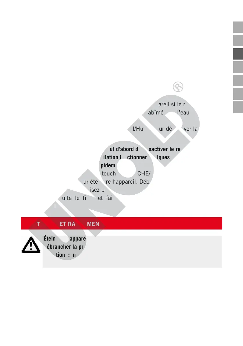 éléments électriques de l‘appareil ne doivent jamais être humides.