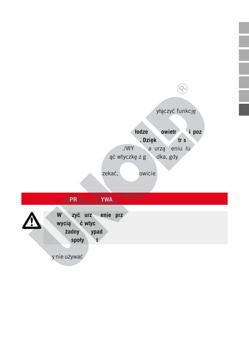 wyłączyć urządzenie. Wyciągnąć wtyczkę z gniazdka, gdy urządzenie nie jest