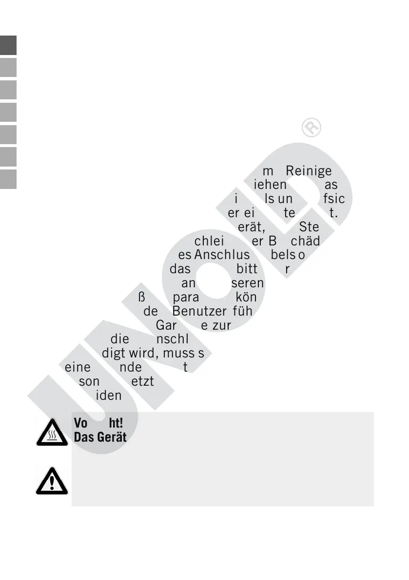 abkühlen lassen. Das Gerät niemals unbeaufsichtigt