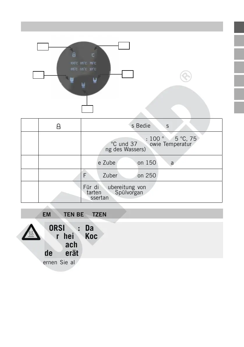 Zur Wahl der Temperatur: 100 °C, 85 °C, 75 °C,