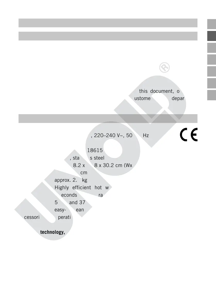 Thank you for having chosen a quality product from the Unold range. We ask that