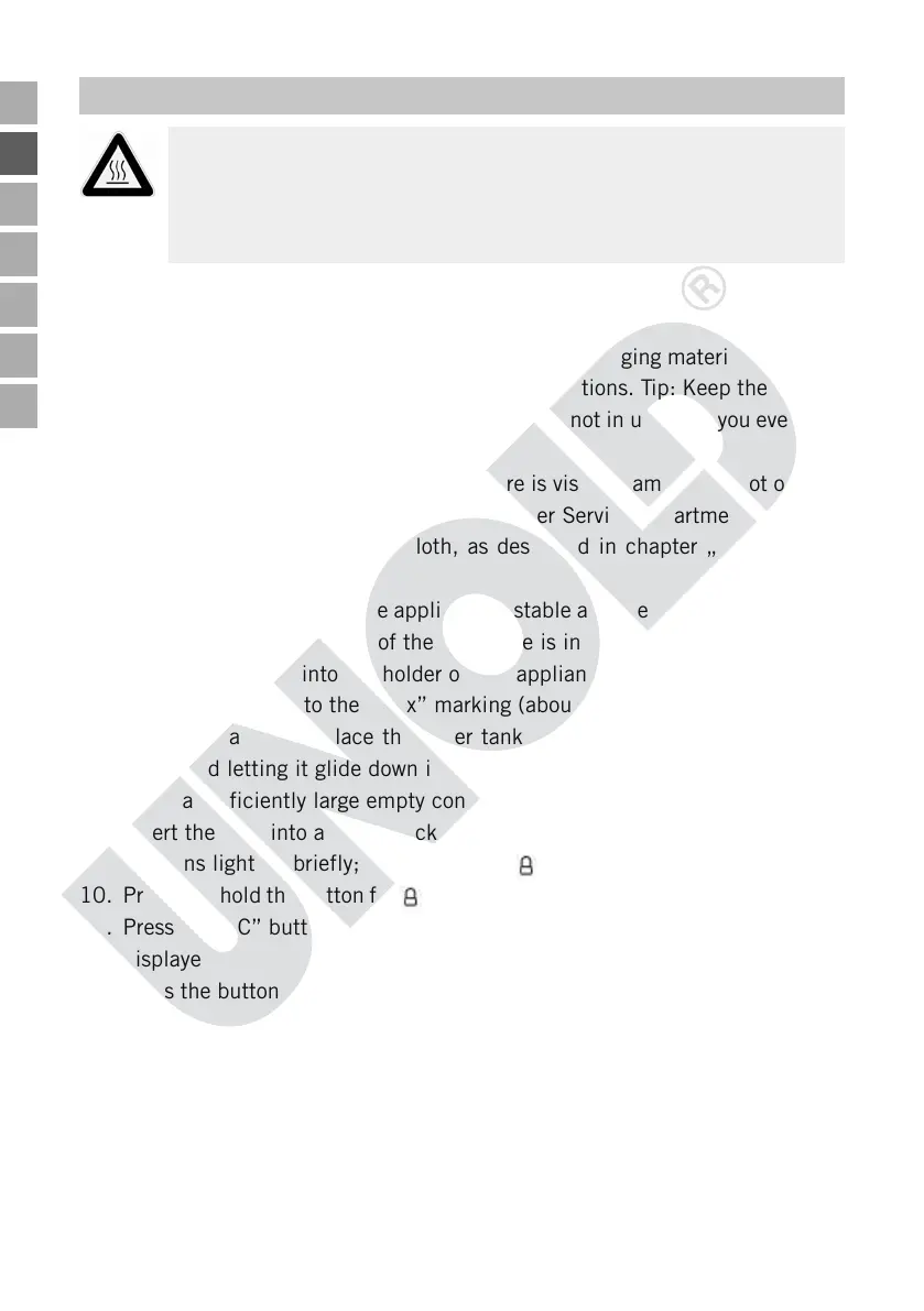 10. Press and hold the button for about 3 seconds, to switch on the appliance.