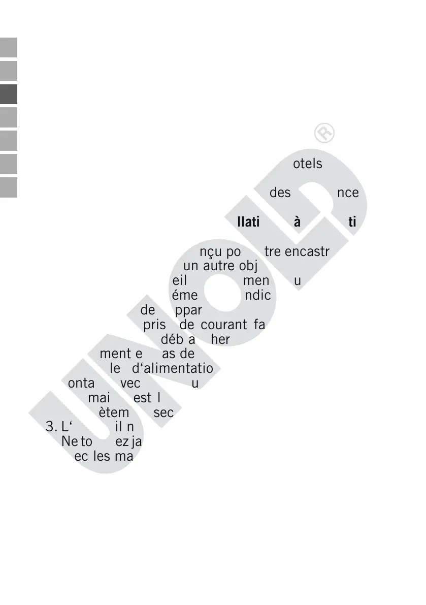 16. Pour des raisons de sécurité, l’appareil ne doit jamais