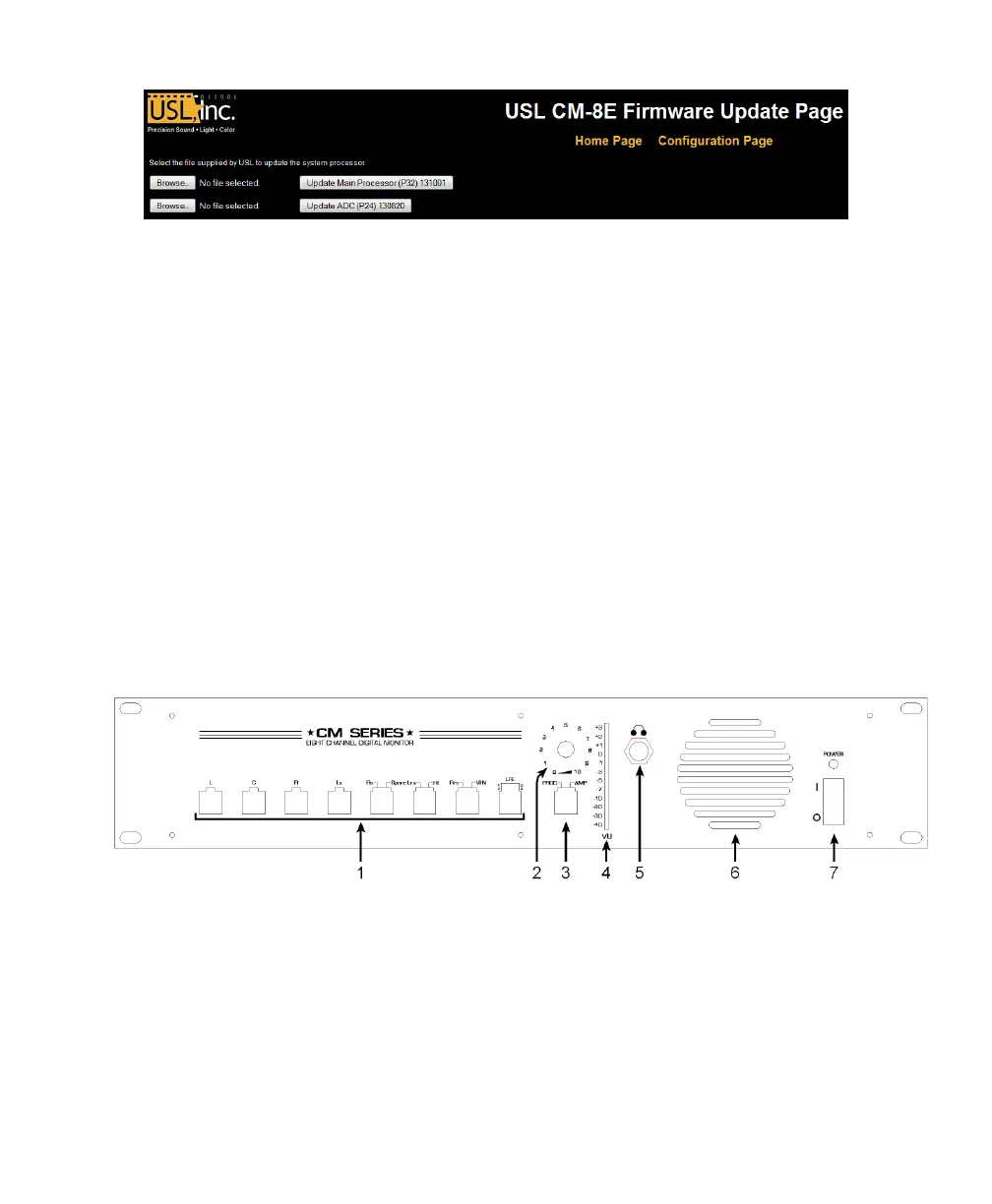 the CM-8E. The front panel LEDs should flash as the factory firmware is restored.