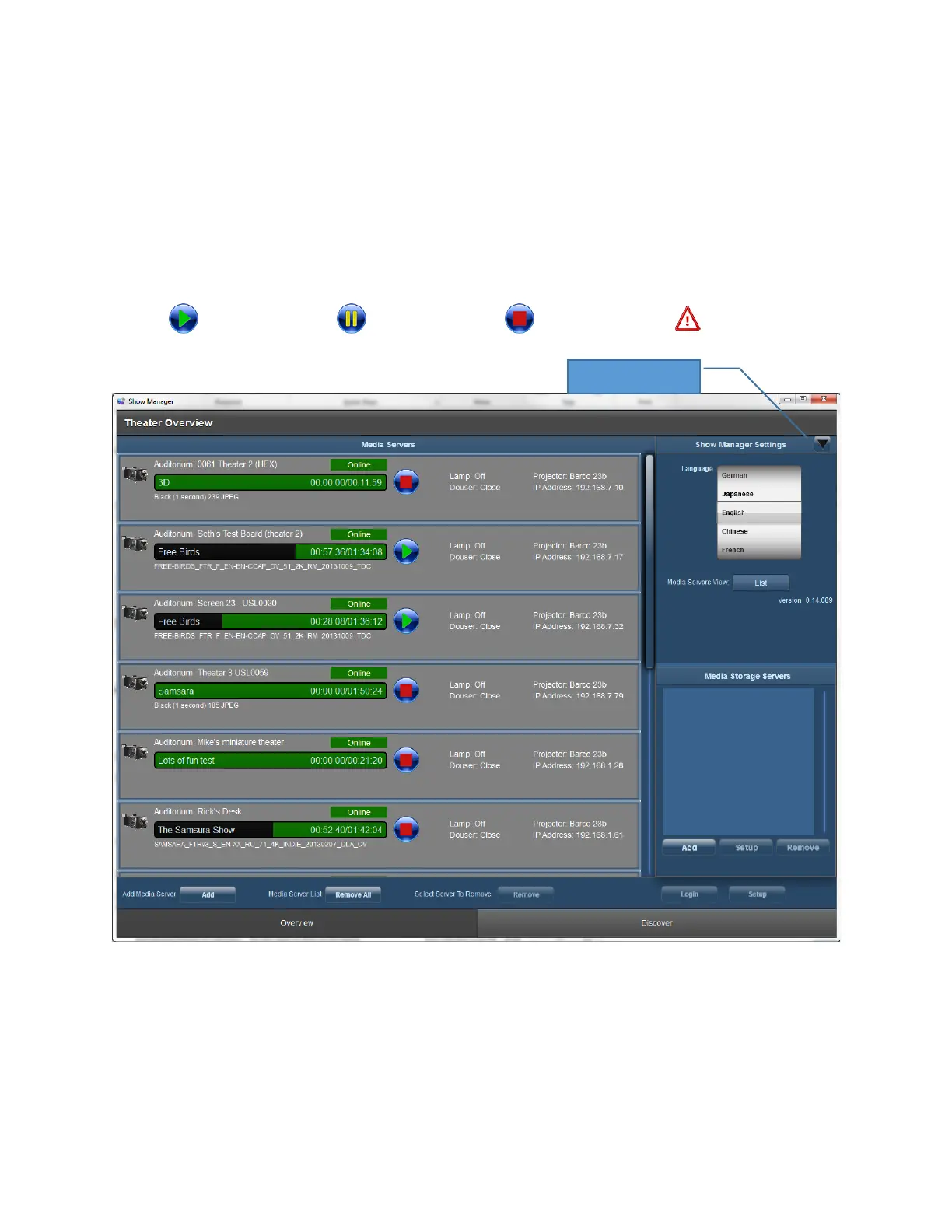 The%state%of%each%media%server%can%be%quickly%identified%by%the%following%icons:'