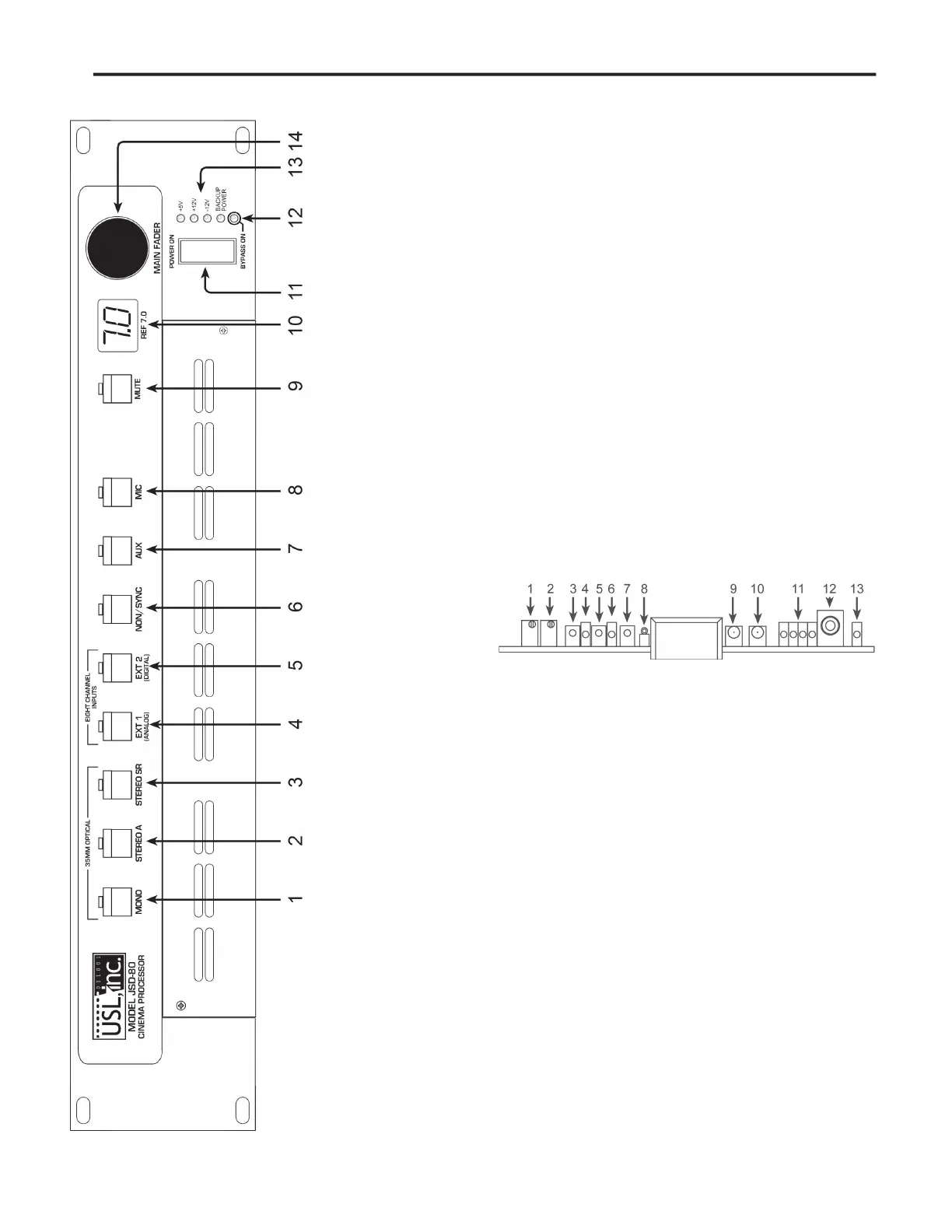 12. Bypass LED: indicates Bypass is active.