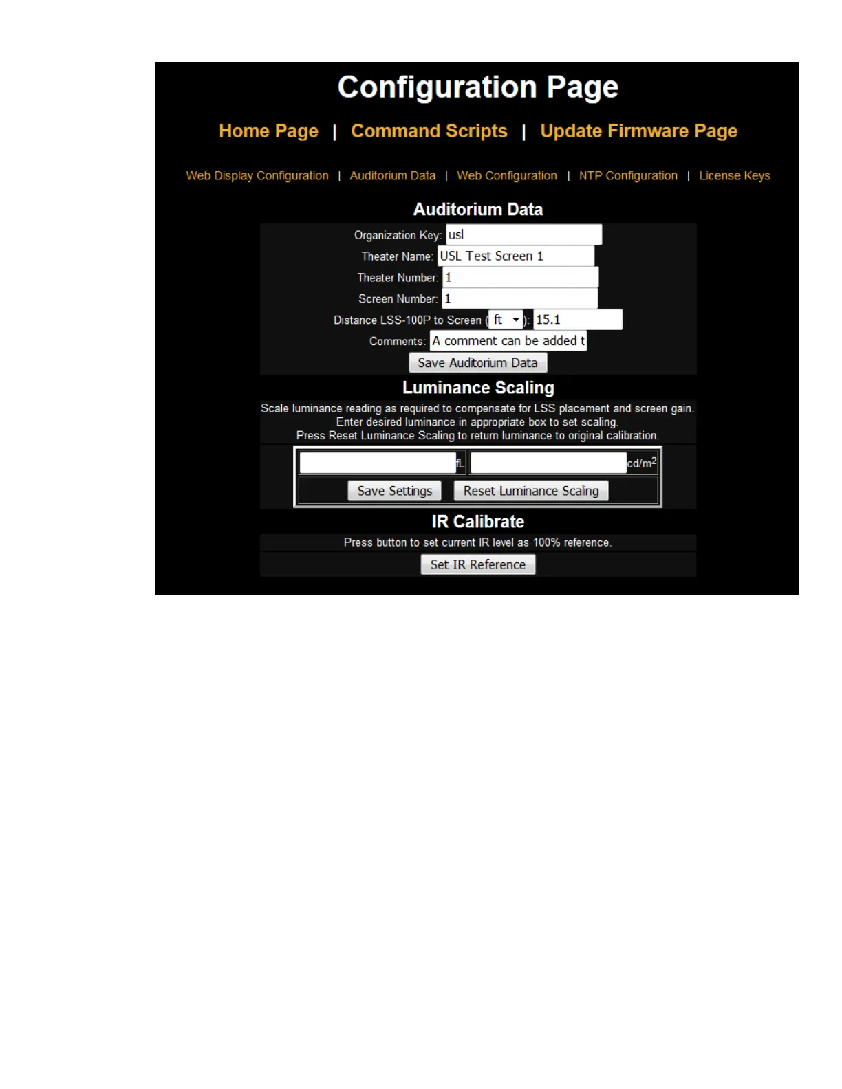 the “Save Auditorium Data” button to save the data. Ignore the luminance scaling and IR