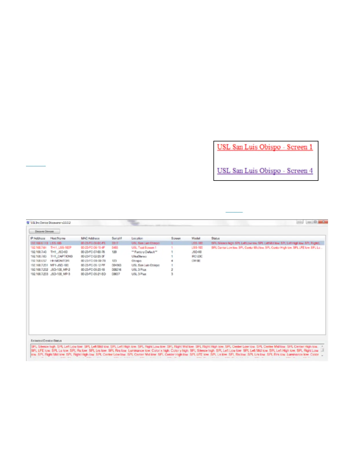 shows the shows the status of discovered LSS-200 devices. The LSS-200 status messages shows any out of tolerance measurements in the