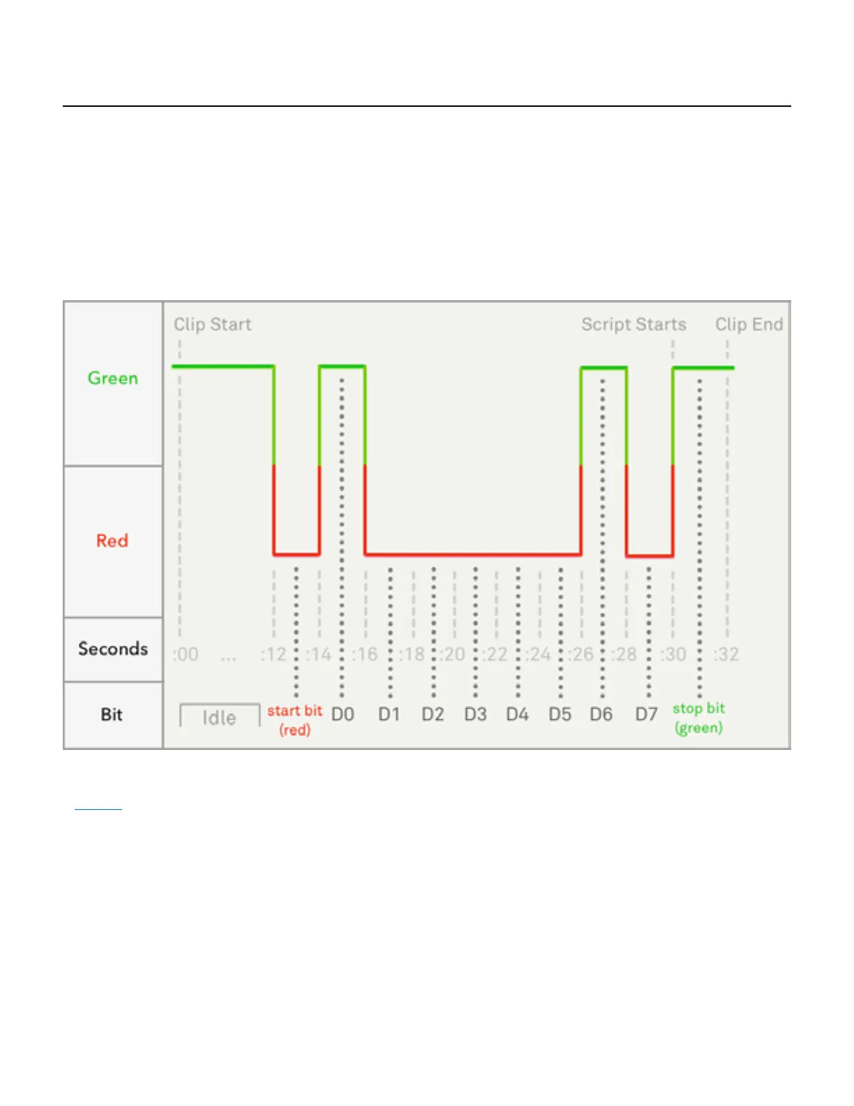 sampled in the middle of the bit time (based on the 1 to 0 transition of the beginning of the start bit). The letter ‘A’ starts script 0 (the first one).