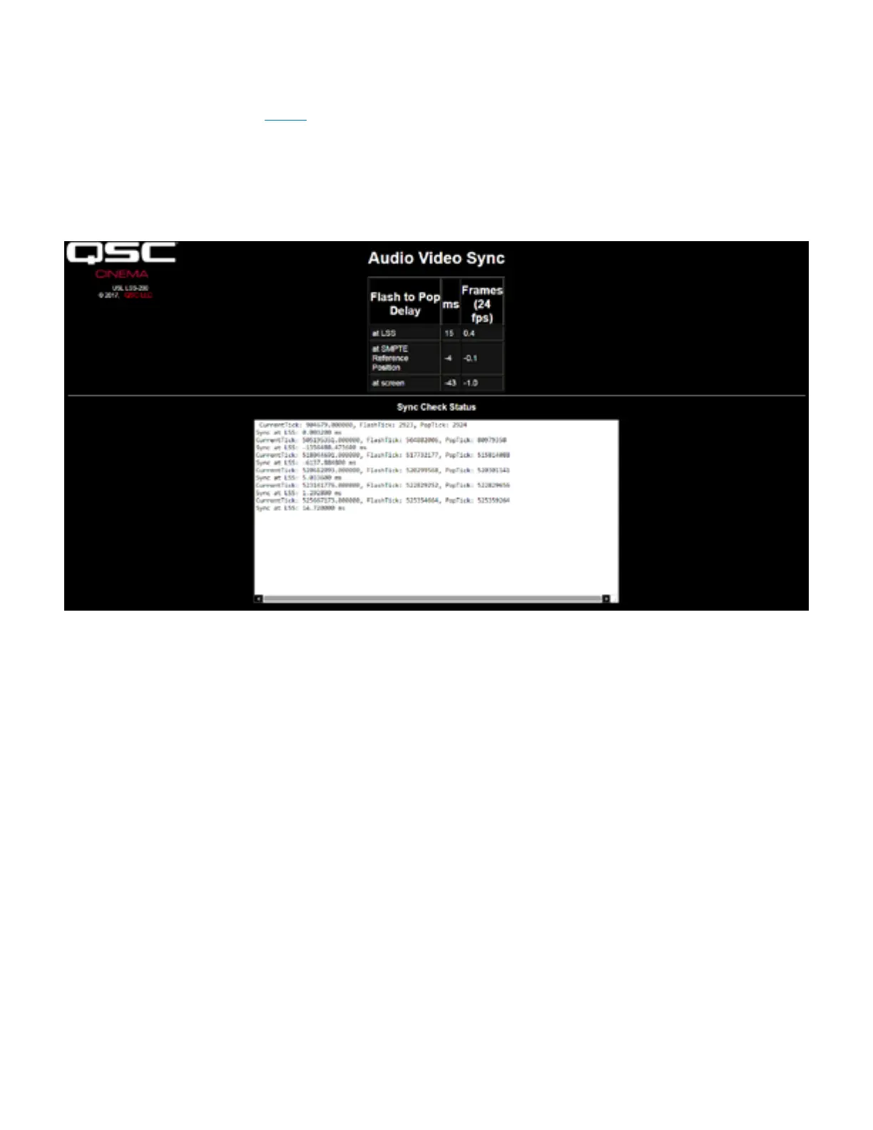 LSS-200 also displays the sync delay at the screen and at the SMPTE reference point (2/3 of the way back in the auditorium). The sync delay