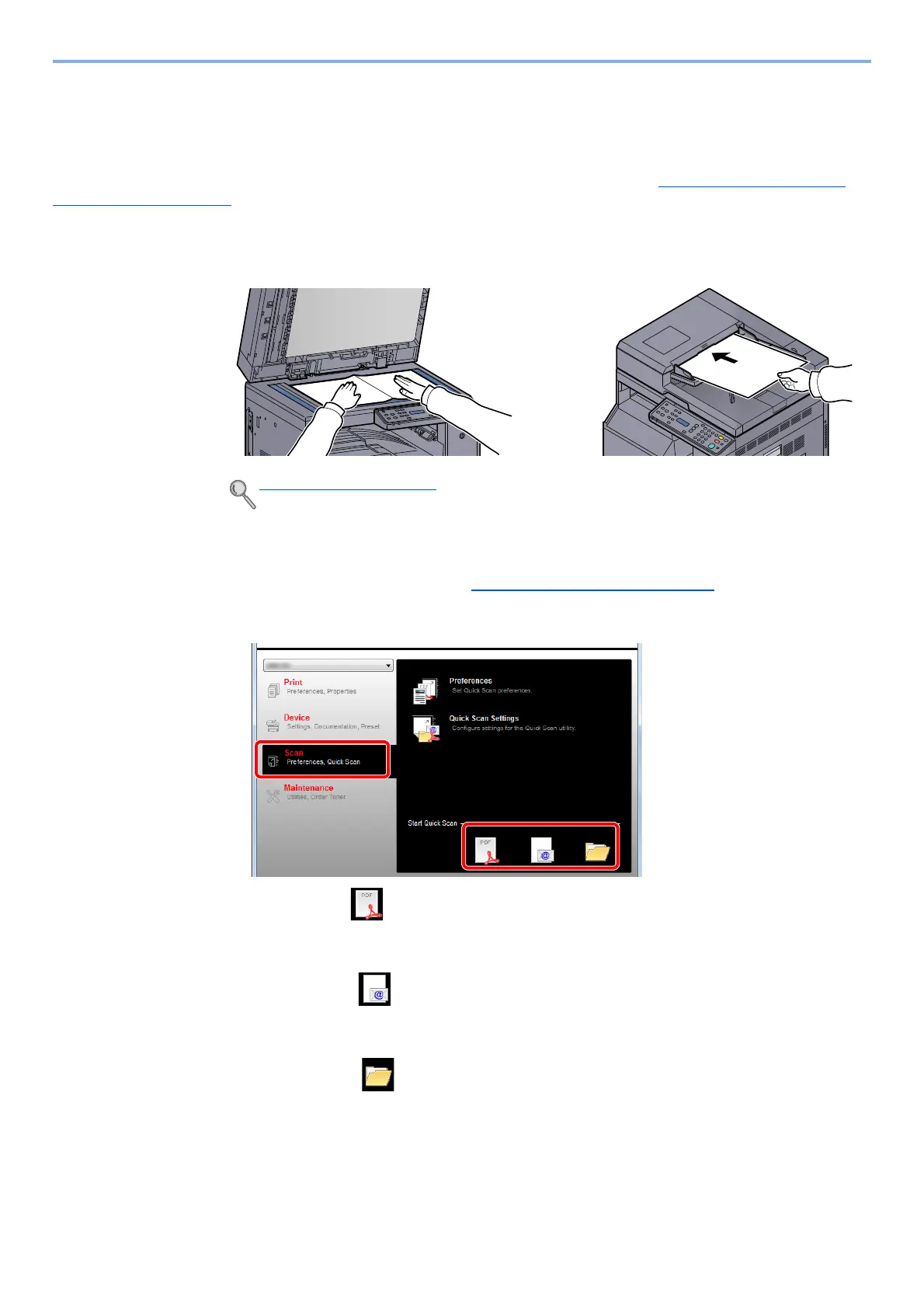 2 Click [Scan to PDF], [Scan to Email] or [Scan to Folder] icon on the [Scan] tab.