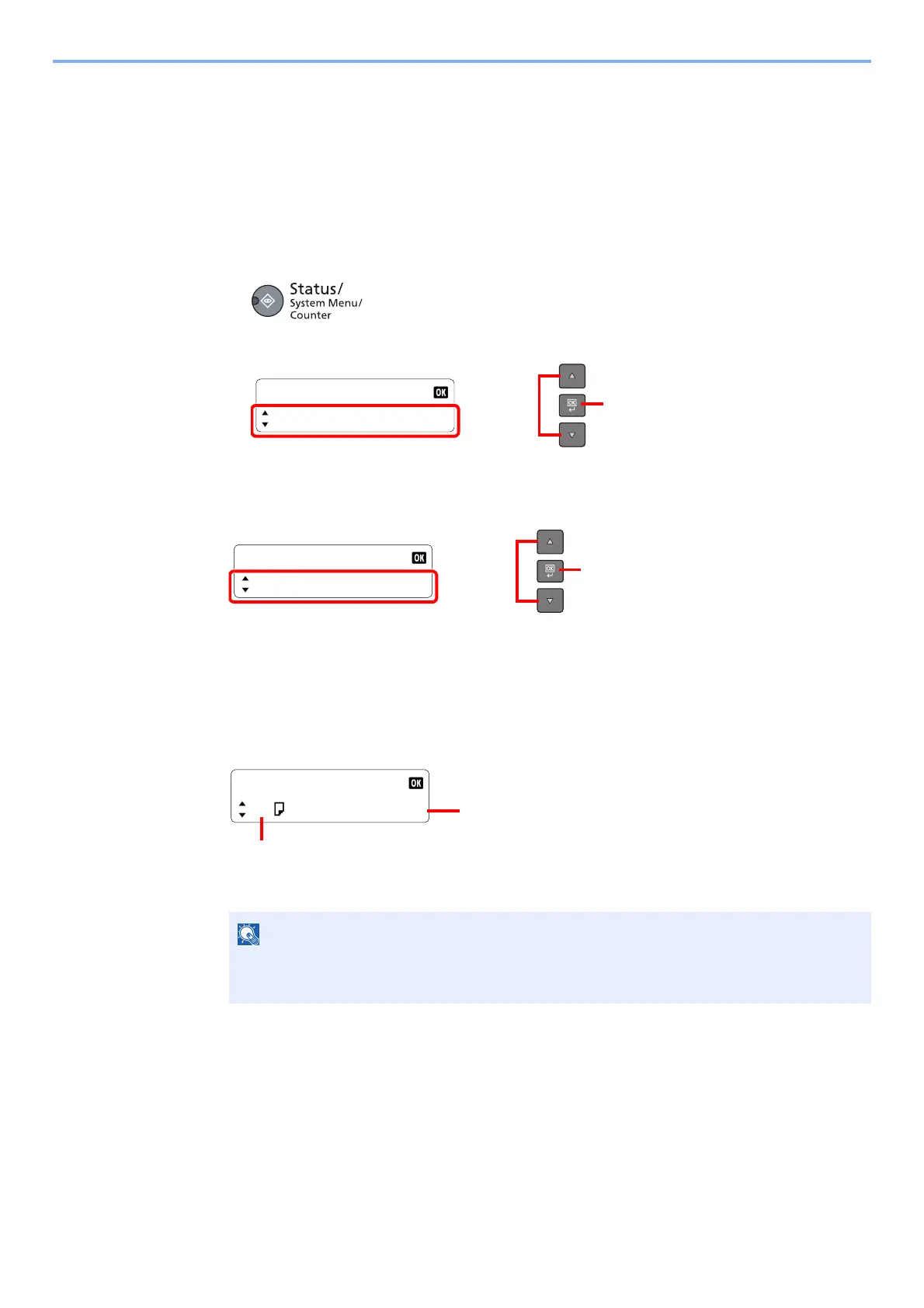 Press the [▲] or [▼] key to select [Toner Status] or [Paper Status], and press the [OK] key