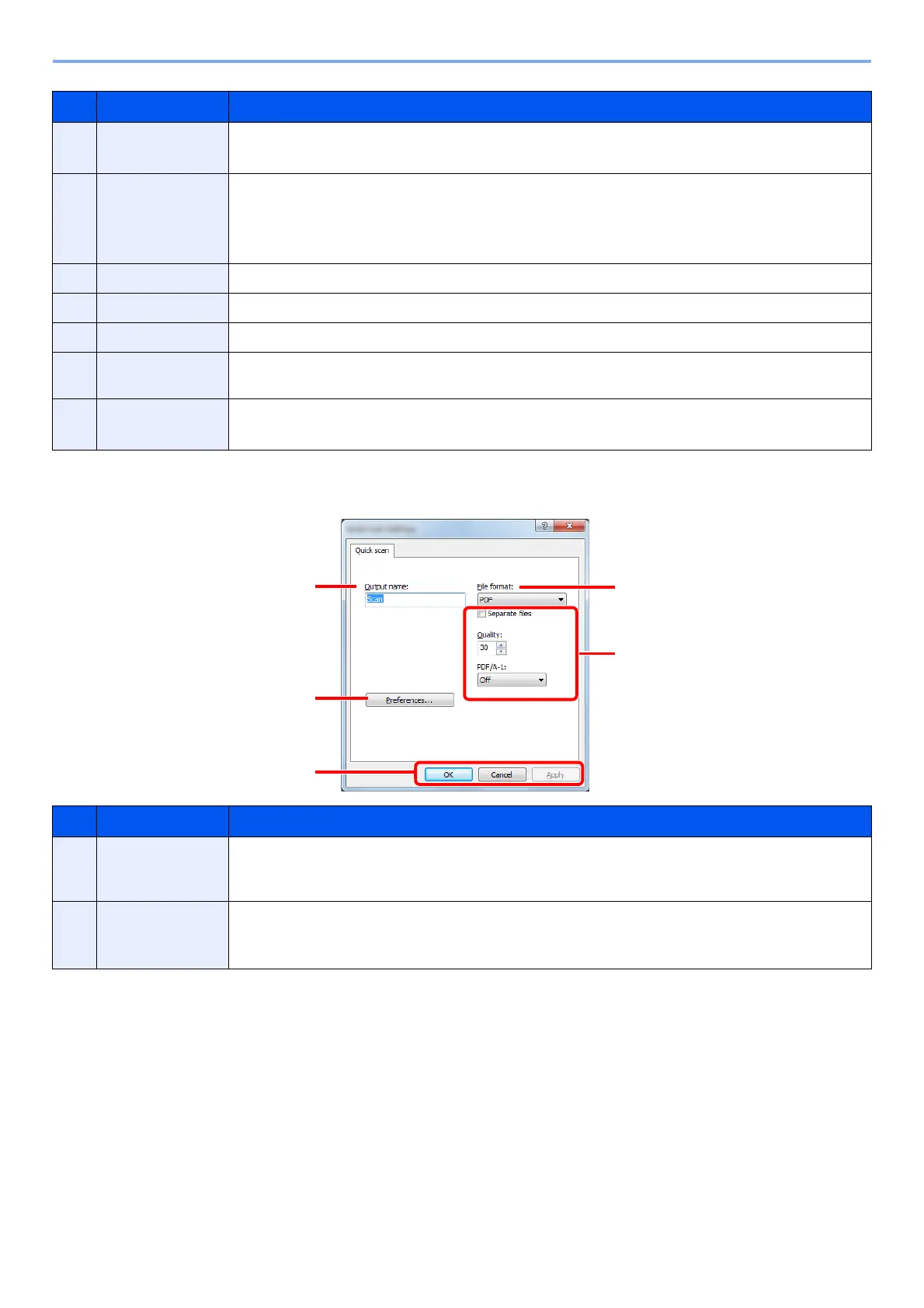 1 Output name Assign a document name to scanned images. When multiple images are saved in the same folder, a