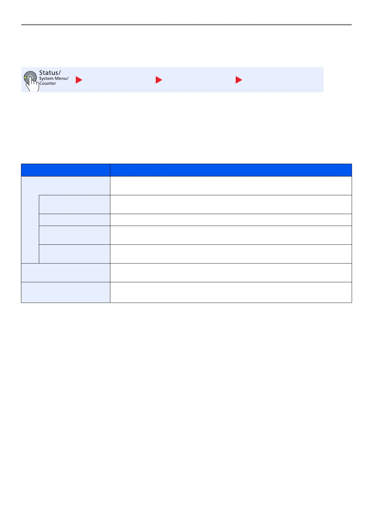 Printed Pages Displays the number of pages copied and printed, and the total number of pages used. You can