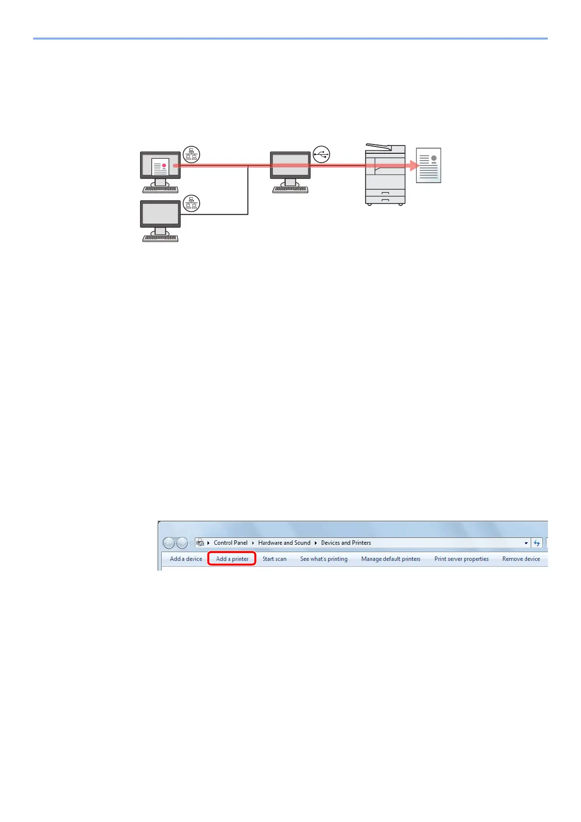 PC), printing from the computer on the network is enabled by setting the machine as the shared printer.