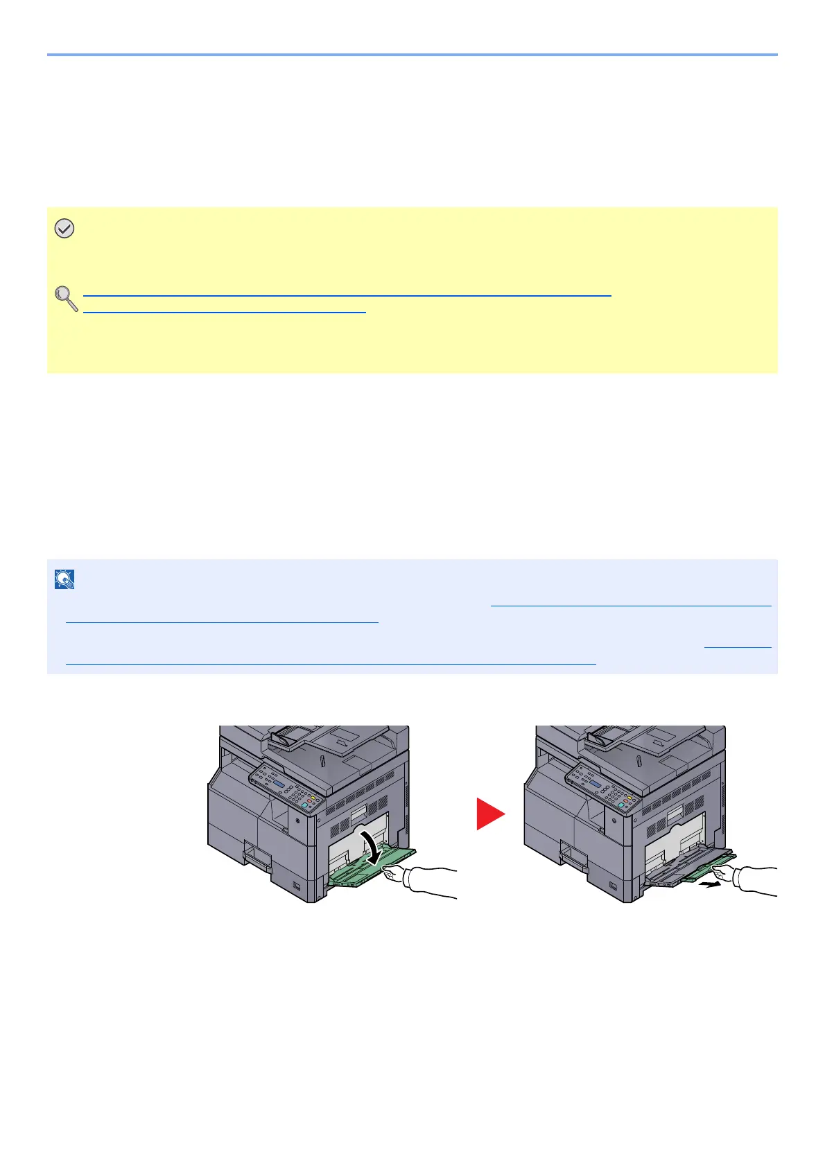 Pull out the MP tray extension to match the paper size. Refer to the label which sealed inside