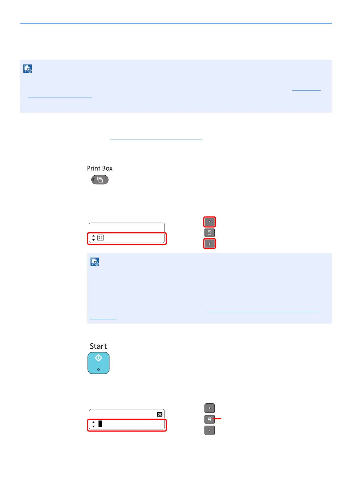 If a document is stored in the box for which no Box name is set, printing from the box is not