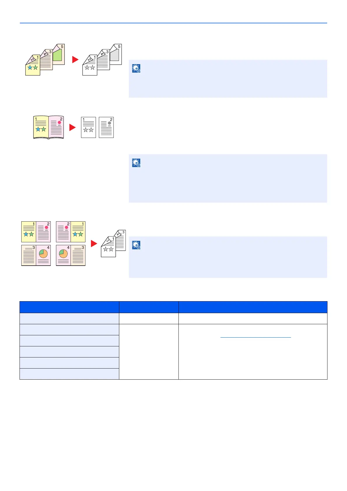 Prints 1-sided or open book originals to 2-sided, or 2-sided or open book originals to 1-sided. Select the binding