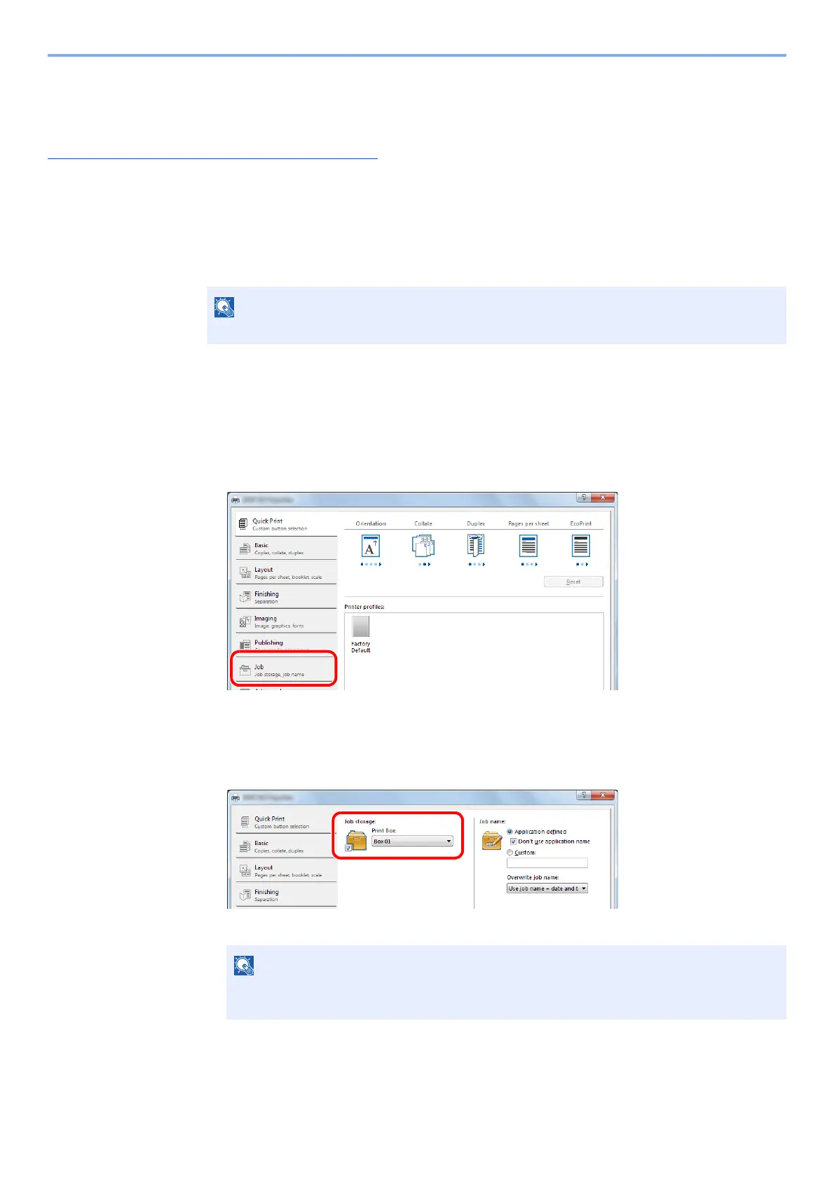 1 Select [Print Box] then select the Print Box where the print job should be stored from the