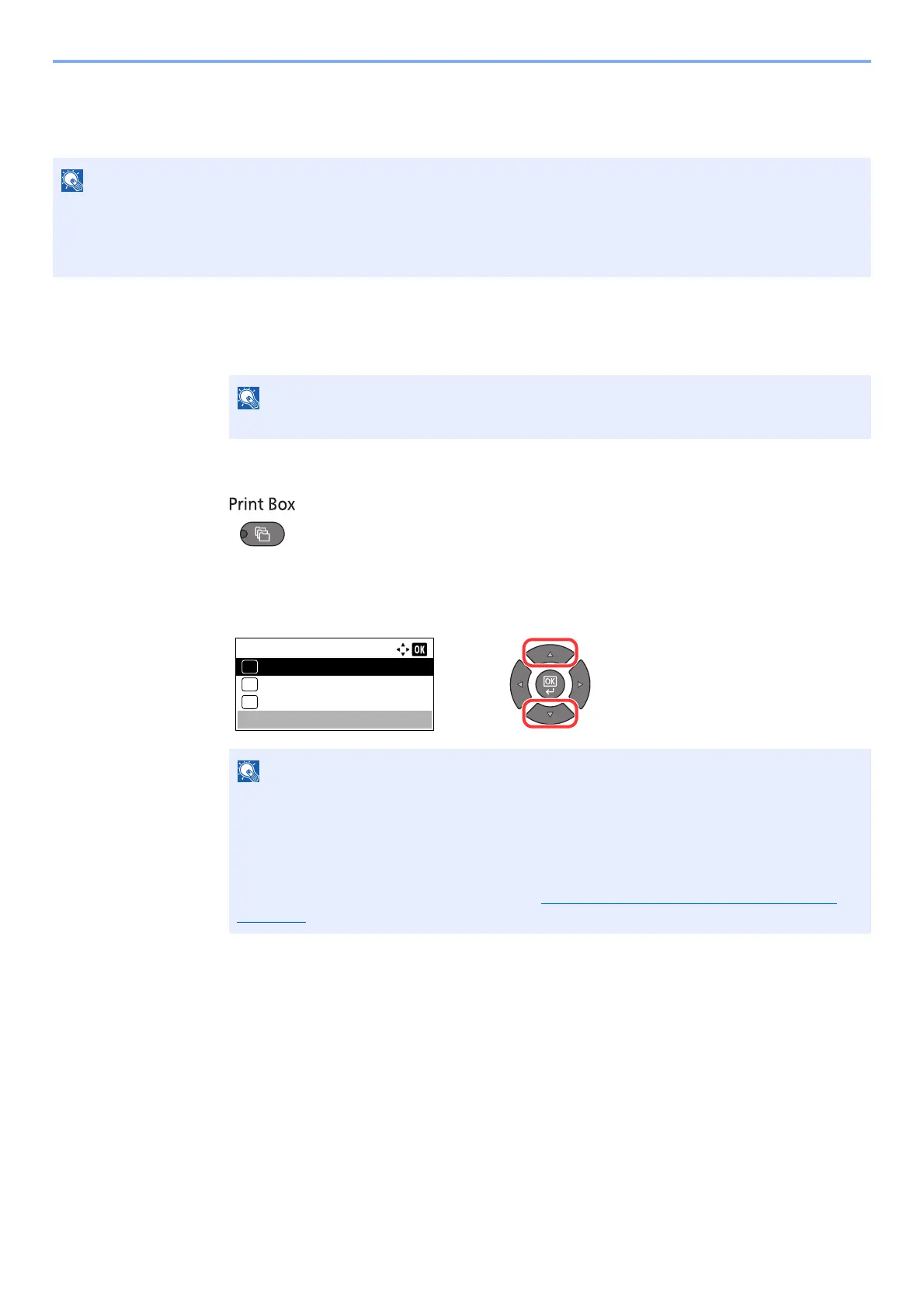 If a document is stored in the box for which no Box name is set, printing from the box is not