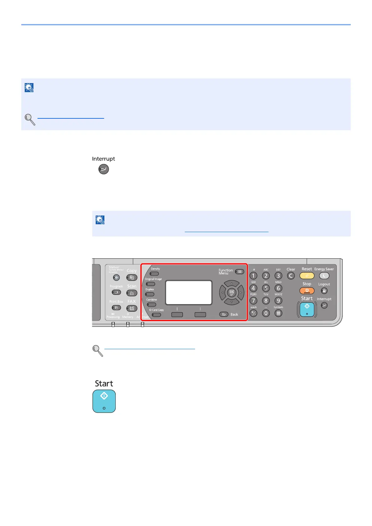 printing resumes. You can change the delay until interrupt copying is canceled. Change the delay as required.