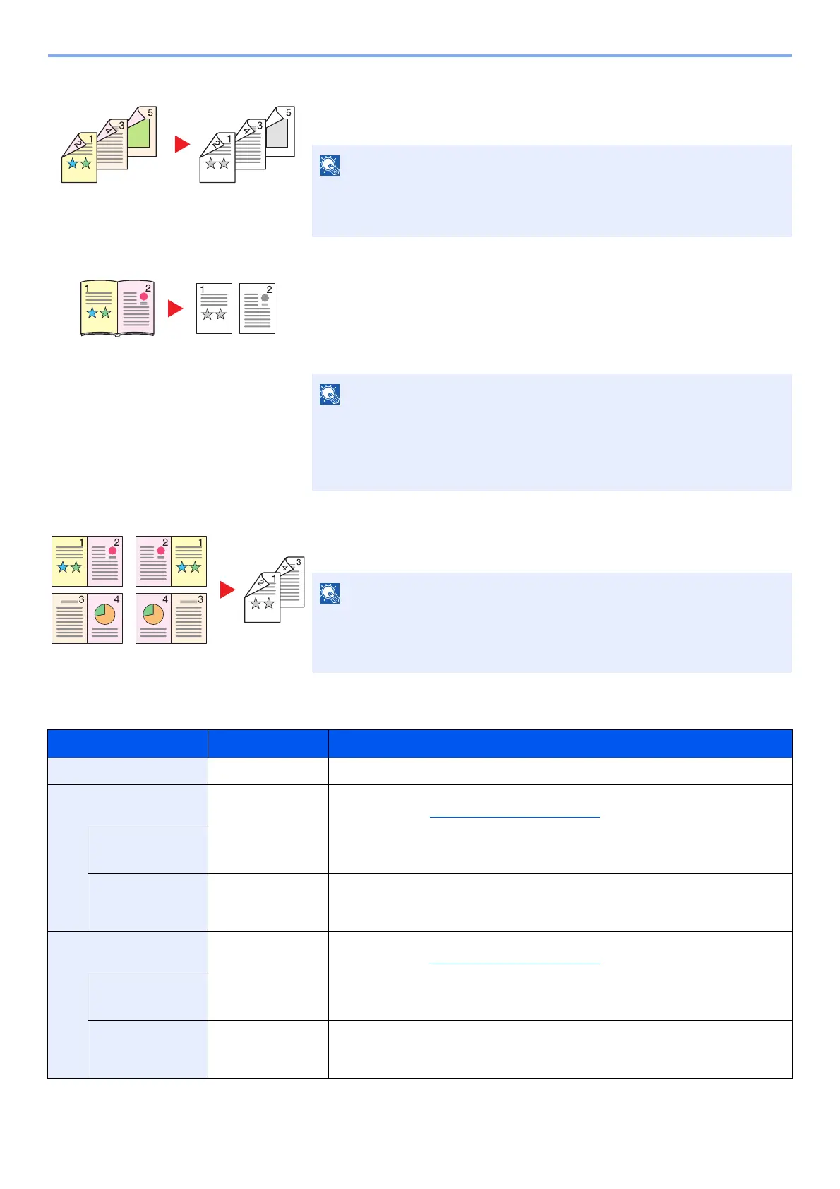 Prints 1-sided or open book originals to 2-sided, or 2-sided or open book originals to 1-sided. Select the binding