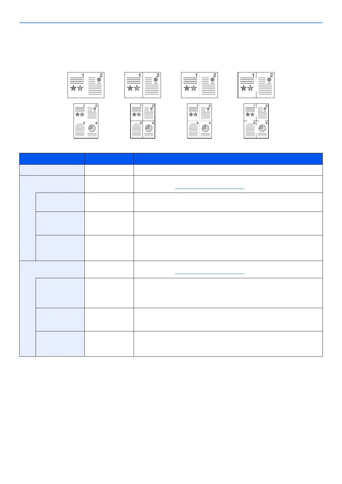 Combines 2 or 4 original sheets into 1 printed page. You can select the page layout and the type of boundary lines