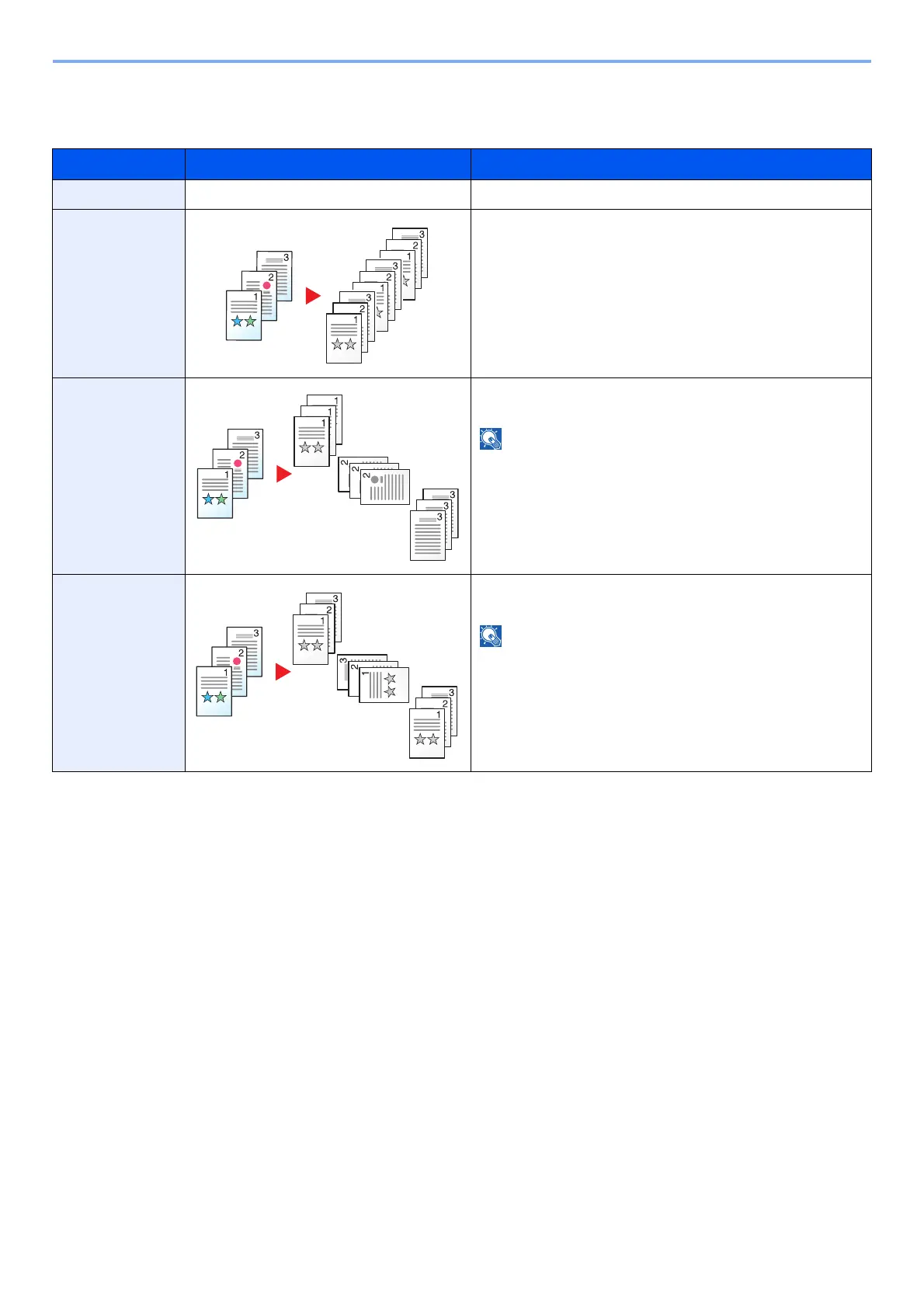 Collate Only Scans multiple originals and delivers complete sets of copies