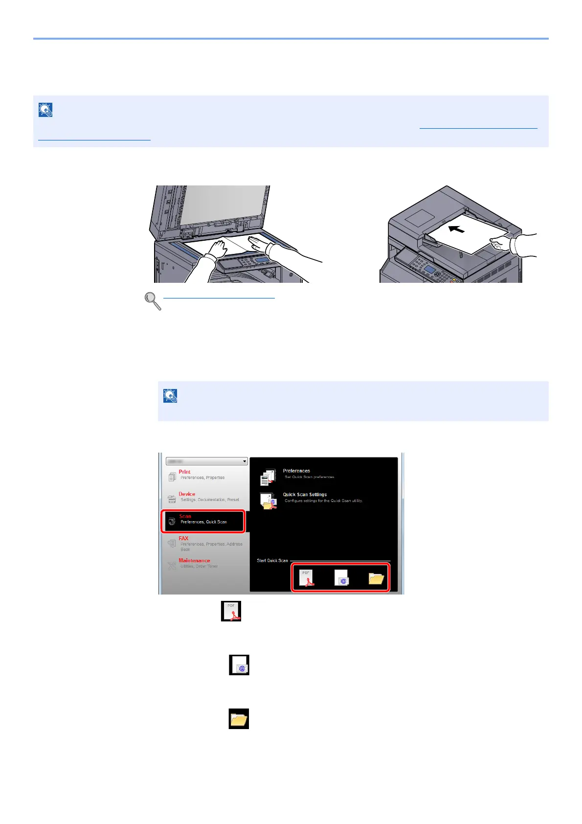 2 Click [Scan to PDF], [Scan to E-mail] or [Scan to Folder] icon on the [Scan] tab.