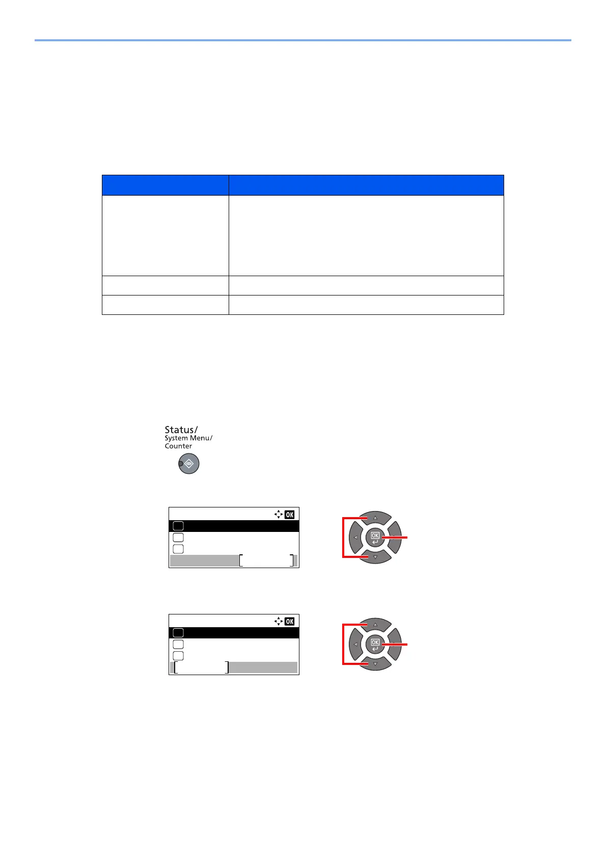 2 Press the [▲] or [▼] key to select [Status], and press the [OK] key.