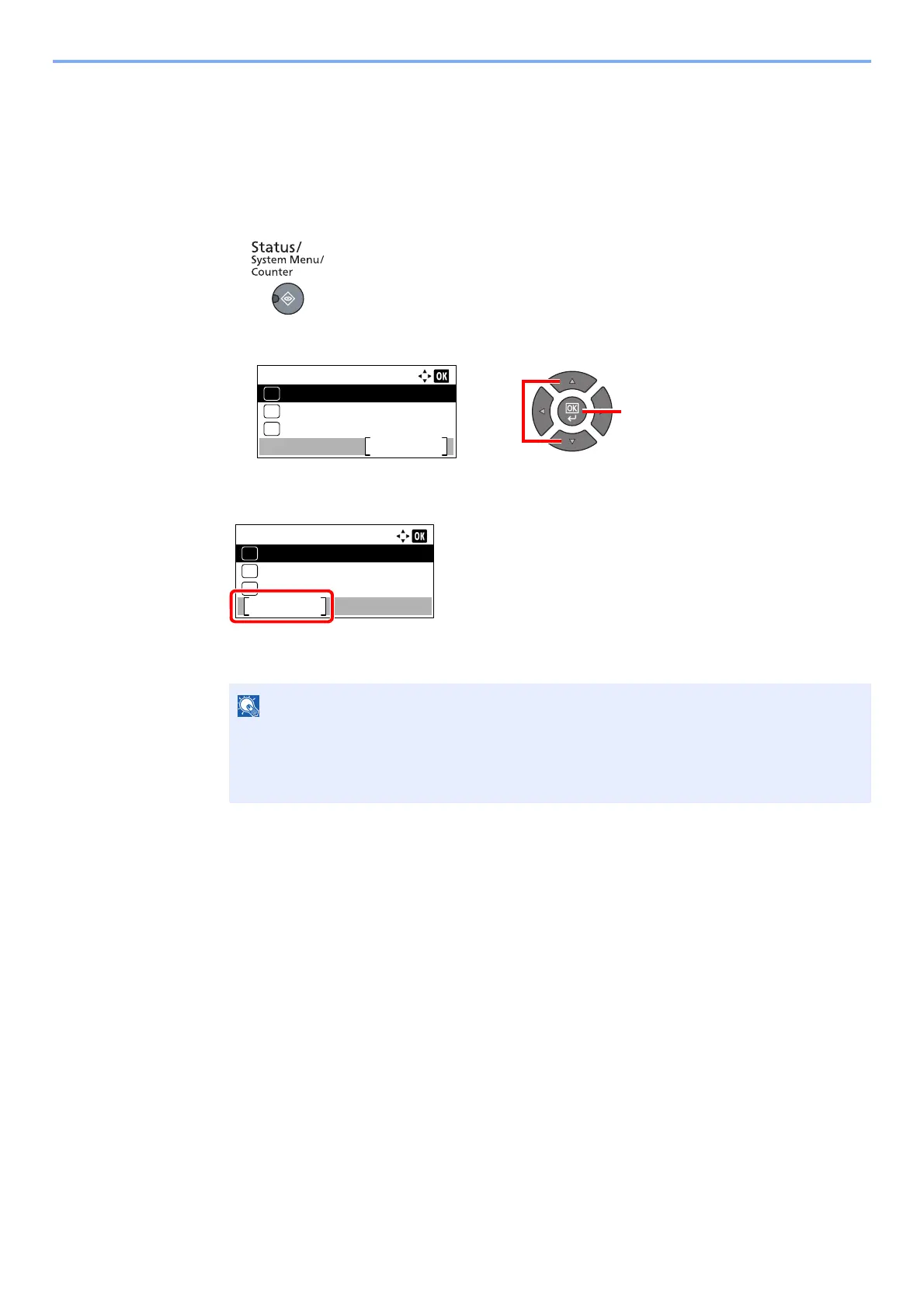 2 Press the [▲] or [▼] key to select [Status], and press the [OK] key.