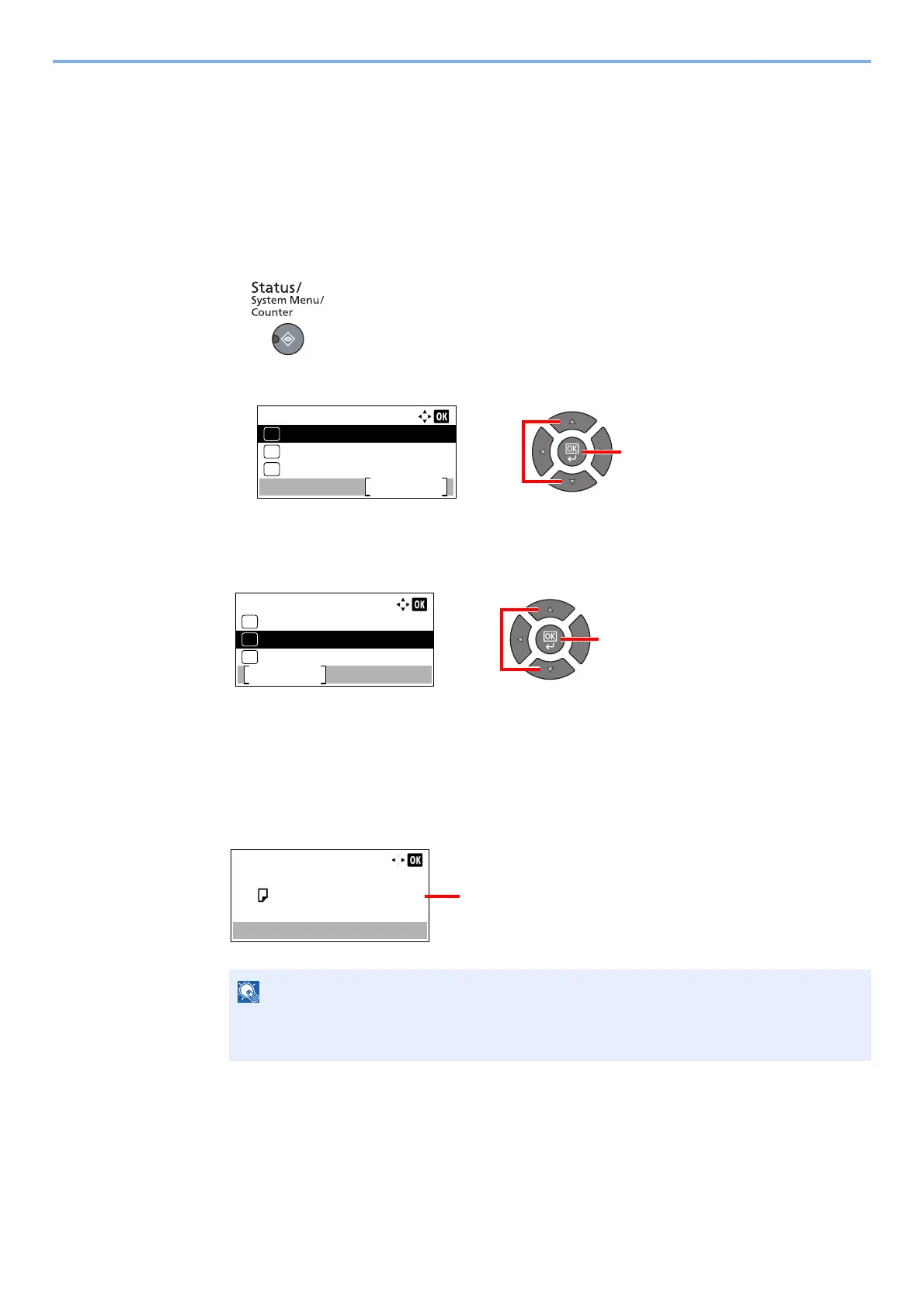 Press the [▲] or [▼] key to select [Toner Status] or [Paper Status], and press the [OK] key.
