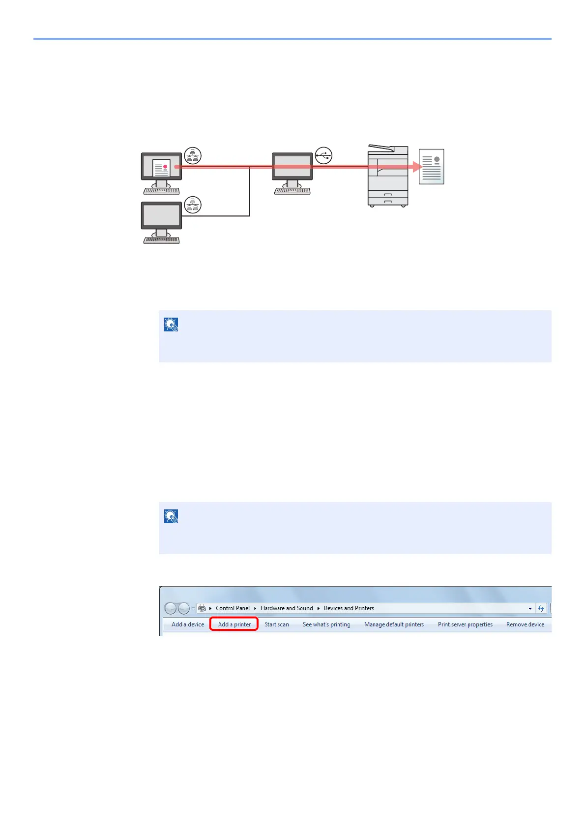 PC), printing from the computer on the network is enabled by setting the machine as the shared printer and FAX.
