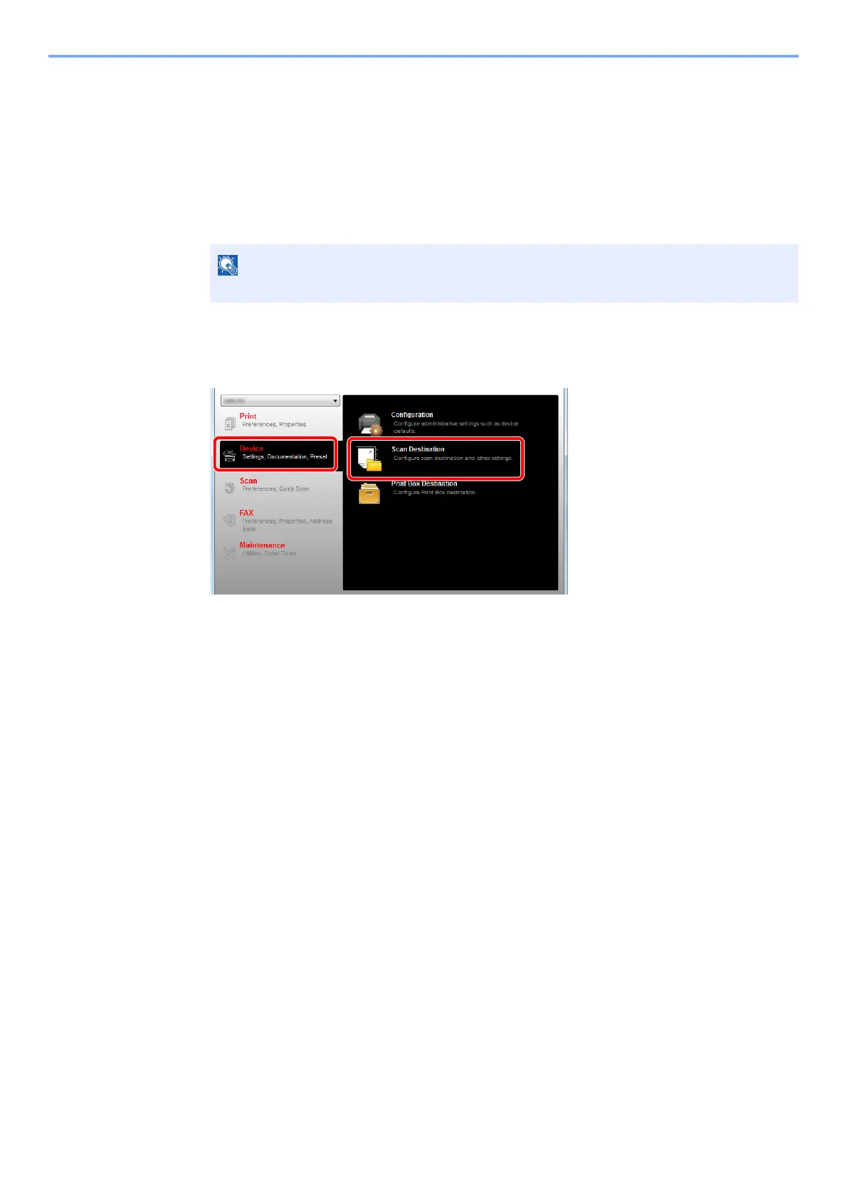 When saving scan data in a folder other than "My Documents", Scan Destination needs to be configured in advance by