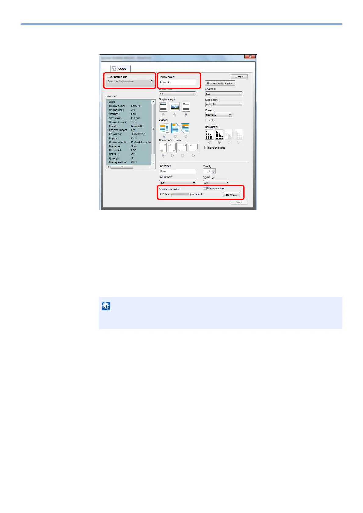 3 Specified folder where the scanned image will be saved. To select the folder, click