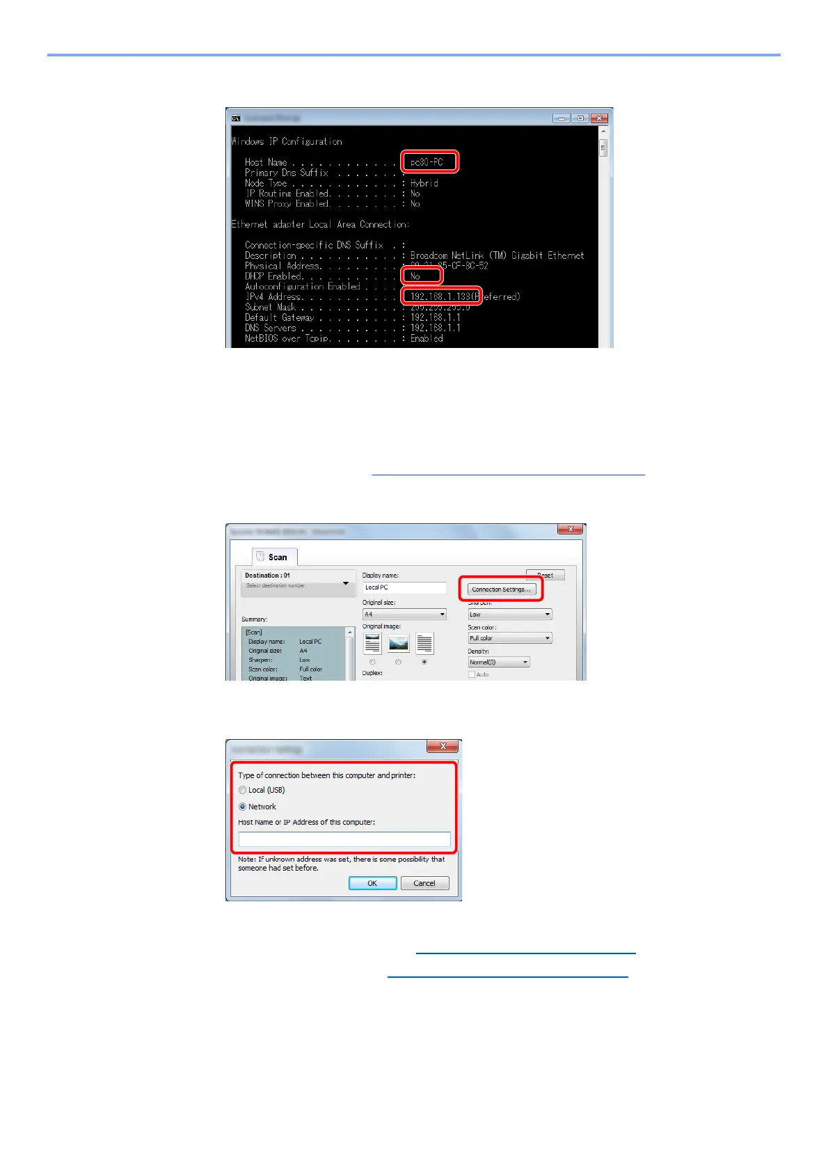 2 Select [Network] and enter the host name or IP address for the computer with the Print