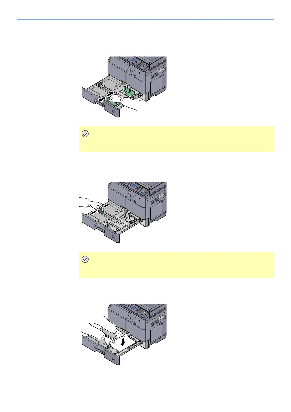 2 Squeeze the ends of the bottom of the paper length guide and move the guide to fit the