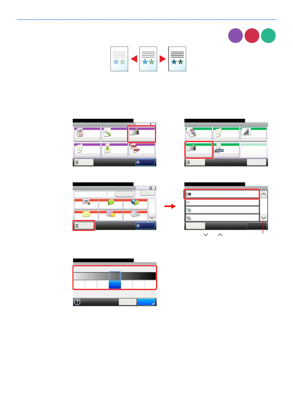 Press [-3] to [+3] (Lighter - Darker) to adjust density.
