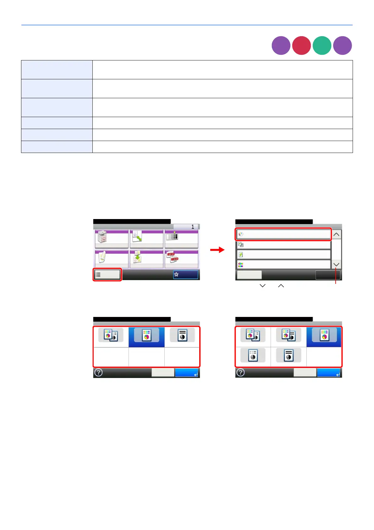2 Press [Functions] and then [Color Selection].
