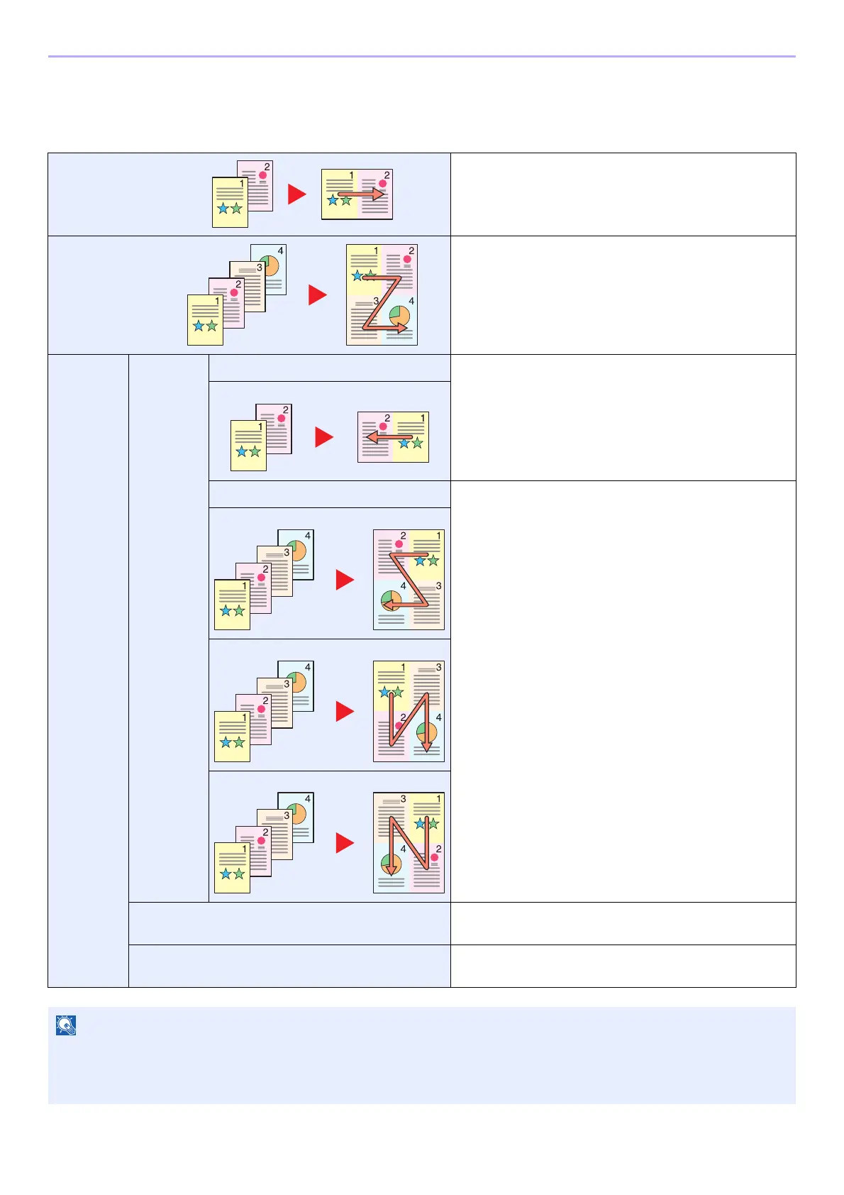 Combine 2 or 4 original sheets into 1 copied page. You can select the page layout or the type of boundary lines around
