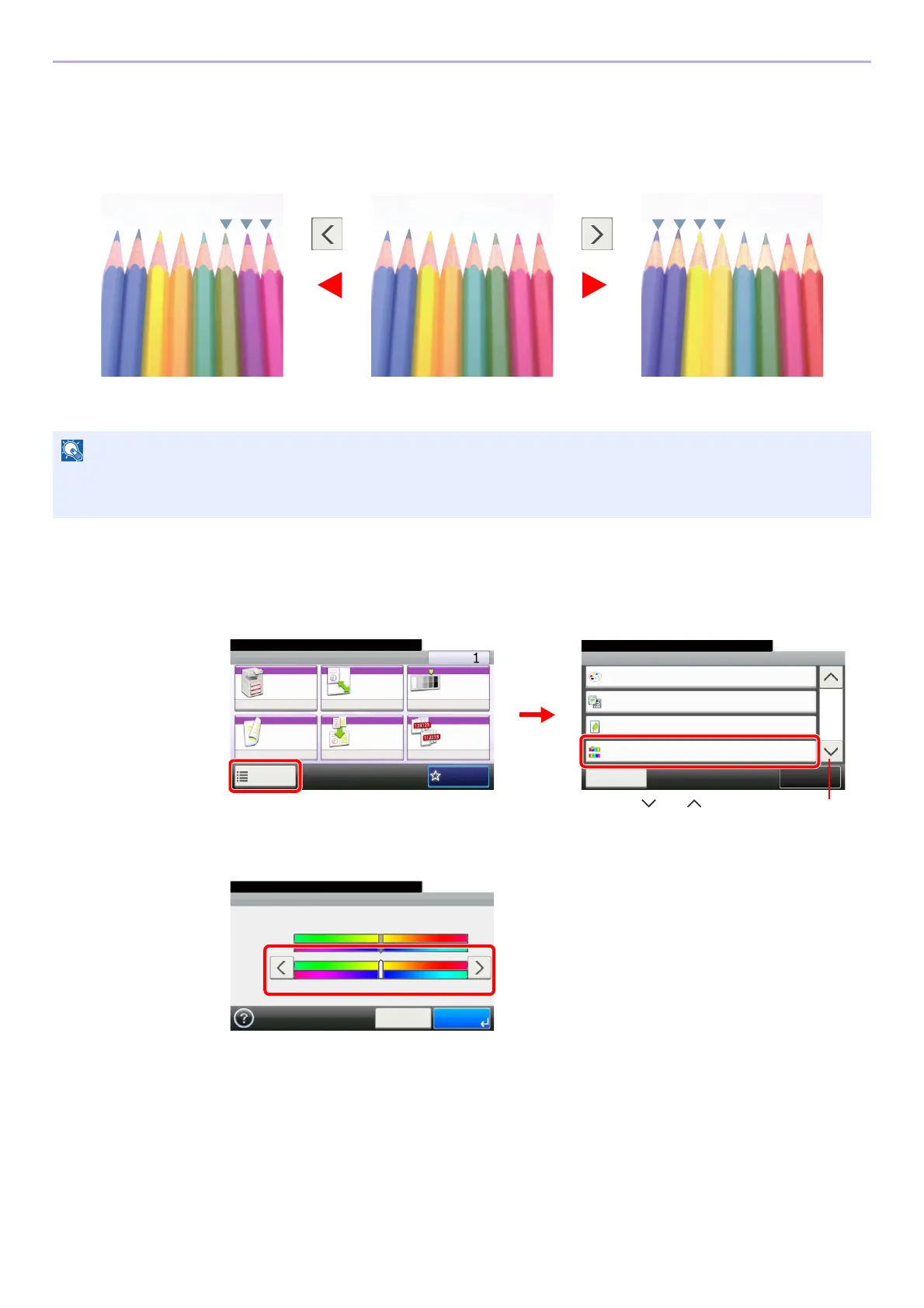 Press [<] or [>] to make the adjustment.