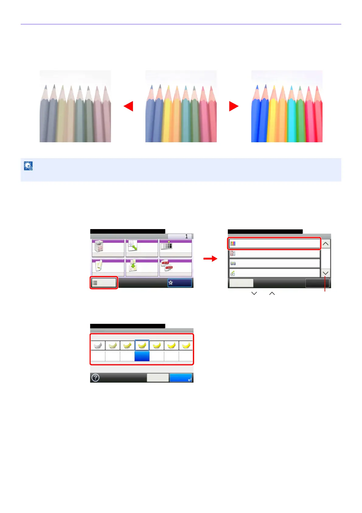 Press [-3] or [+3] (Grayish - Vivid) to adjust the color saturation.