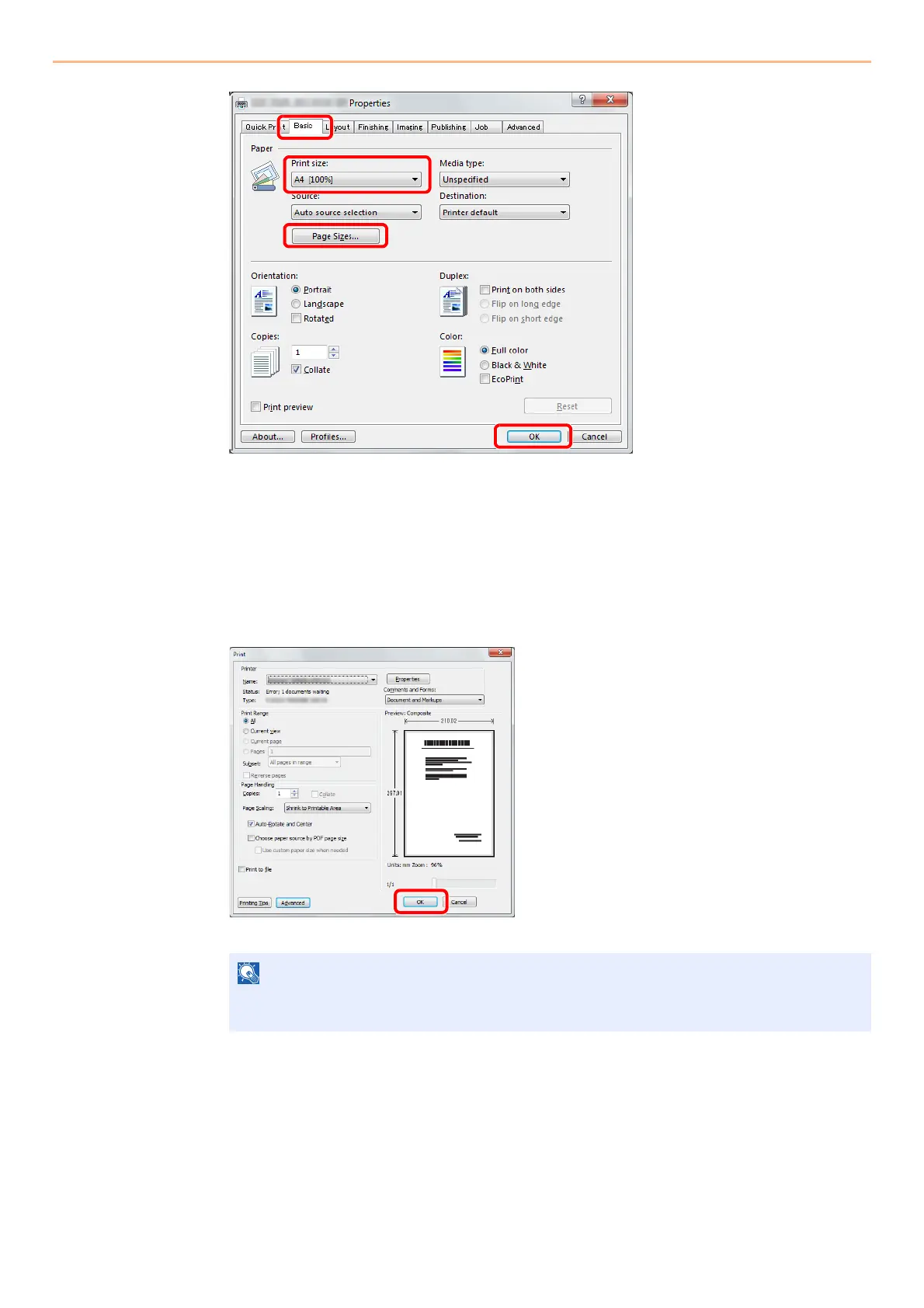 Click the tabs on the print settings screen and configure the print settings as necessary. For