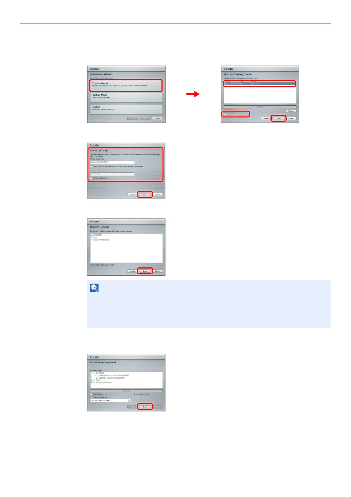 1 Select the print system to be installed. If the machine is set to acquire an IP address
