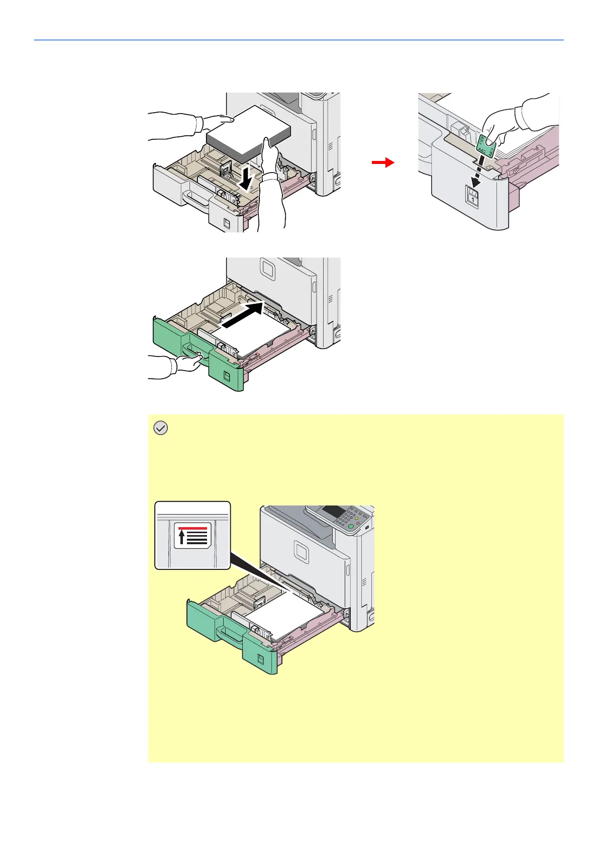 The paper length and width guides must be adjusted to the paper size. Loading the