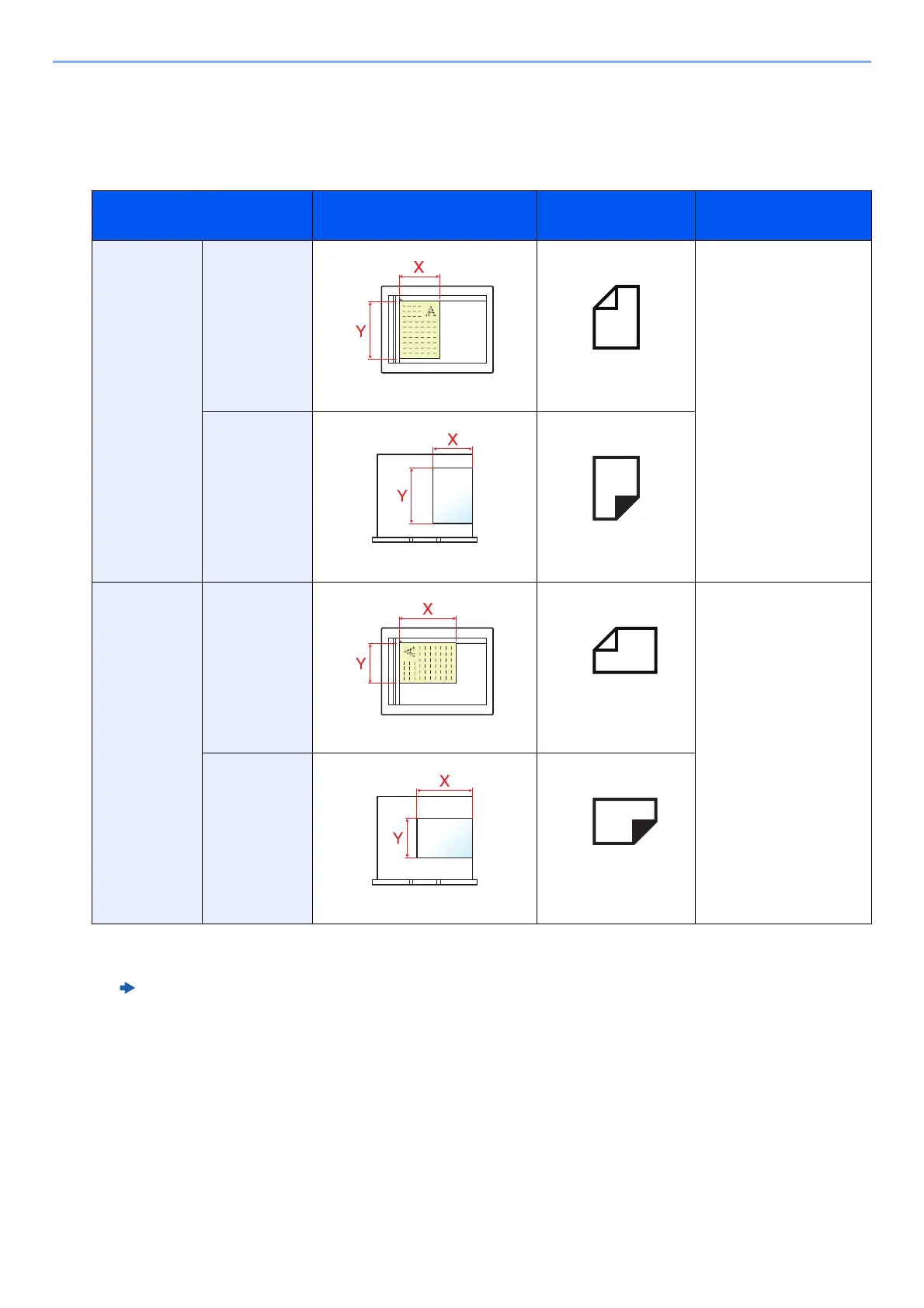 addition, the following icons are used to indicate original and paper placement orientations on the touch panel.