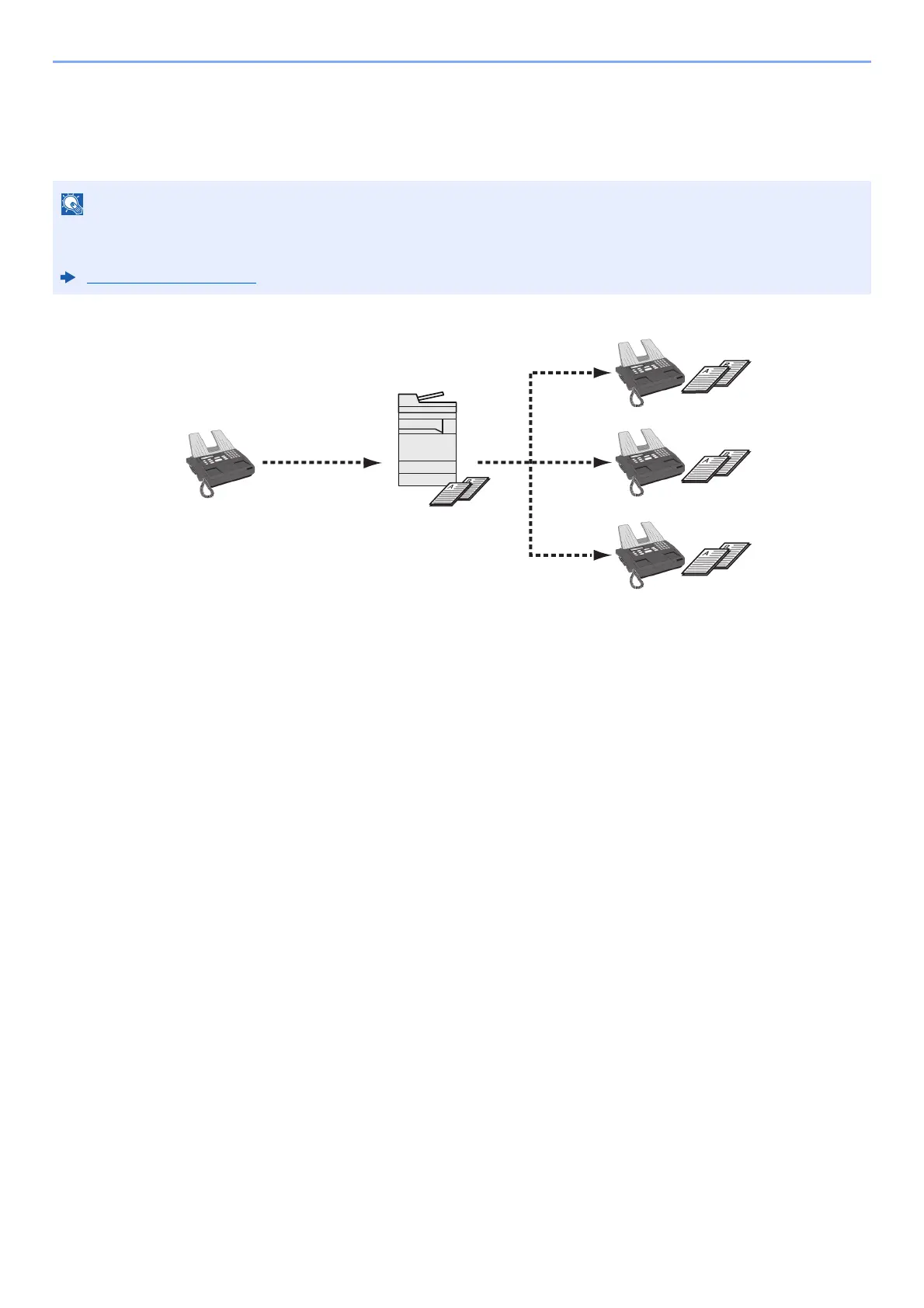 Received originals are forwarded to multiple fax machines. By setting a sub address as the forwarding requirement, you