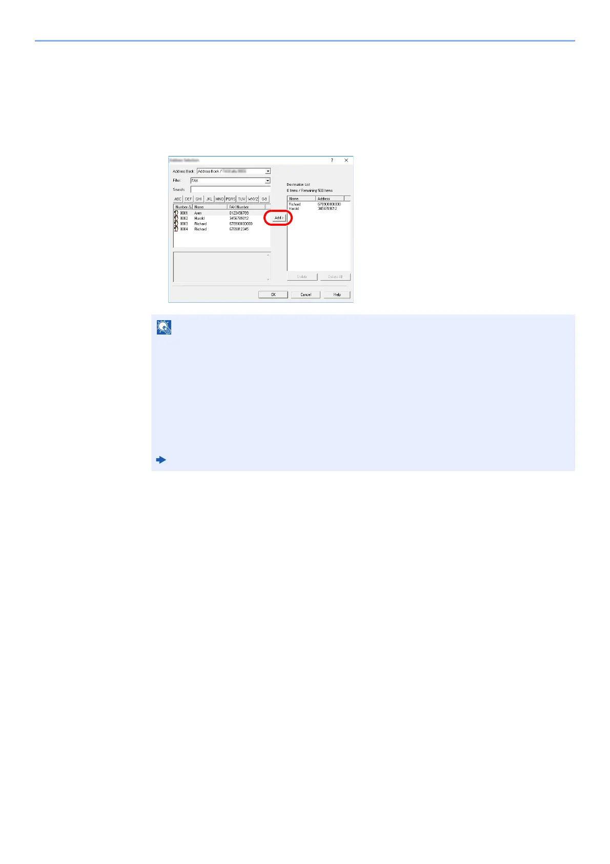 dialog box. To select an Internet fax destination or a group of destinations, select [iFax (Via
