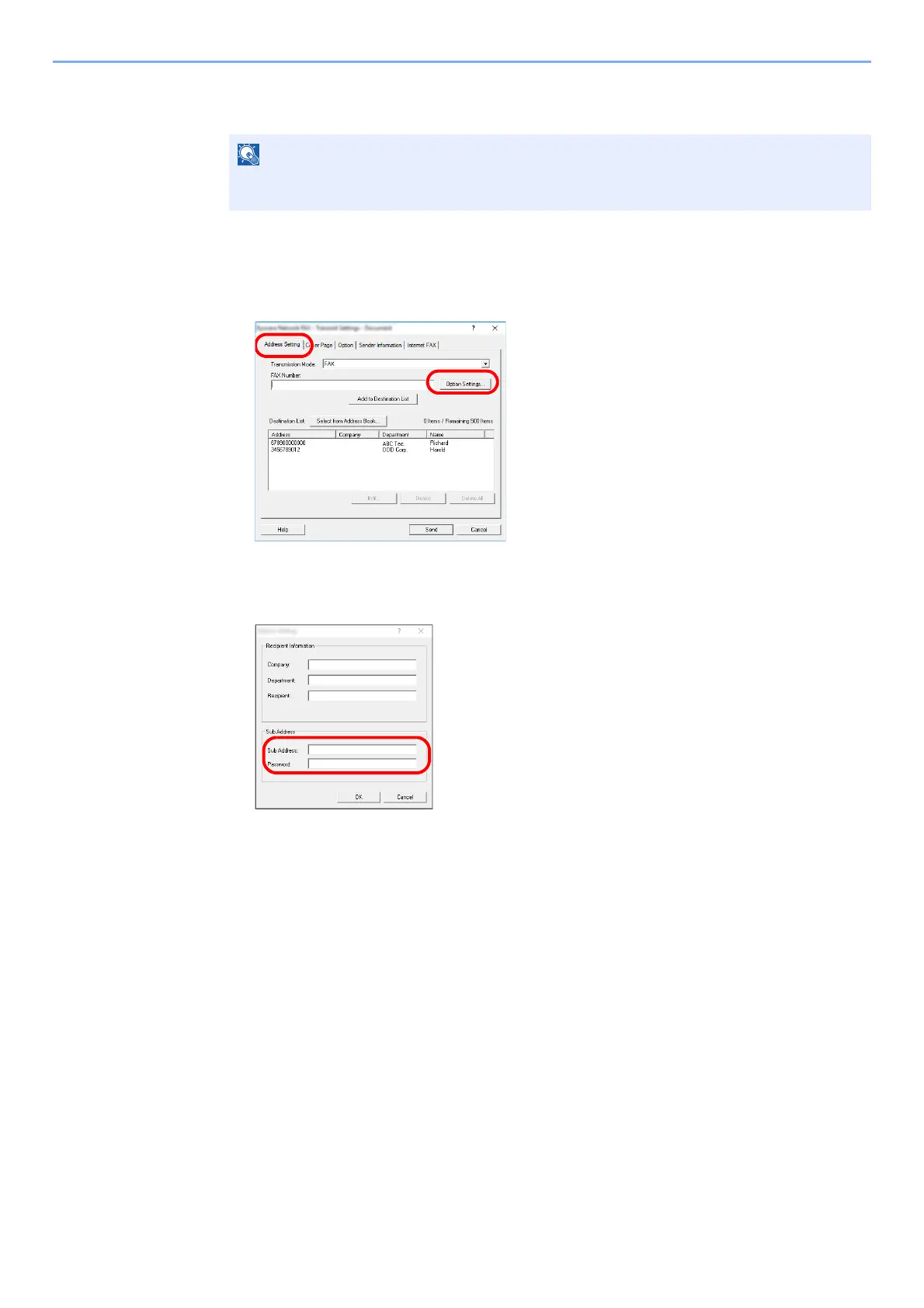 Click on the [Option Settings] button in the [Address Setting] tab of the [Transmit Settings]